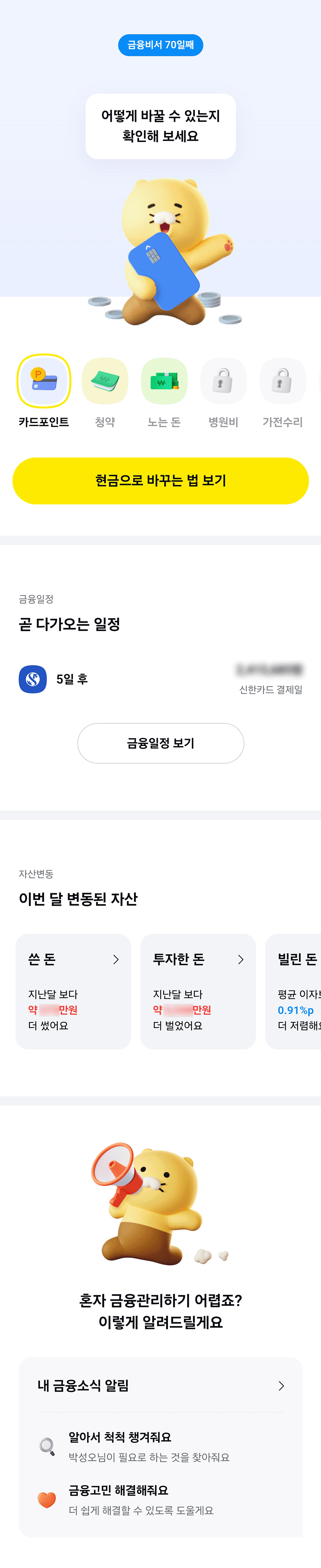 Financial Assistant is a proactive service providing personalized financial insights. It functions as a "pocket assistant," delivering helpful information based on pre-collected user data rather than requiring manual searches. I developed the Main Page, which serves as an entry point to various chatbot-driven detail pages. To improve user engagement and retention, I implemented fluid animations using Motion (formerly Framer Motion) to create a more dynamic interface. We optimized performance by adopting Next.js Server-Side Rendering (SSR), significantly improving First Contentful Paint (FCP). Additionally, I reduced the size of the company-wide shared Docker images by 30%, streamlining deployment efficiency across KakaoPay.