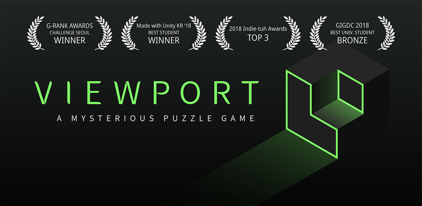 Before transitioning to Front-End development, I aspired to create my own games. This led me to develop the mobile puzzle game, Viewport. Viewport is a puzzle game inspired by the multi-view layout of 3D modeling software. In each stage, players analyze a 3D object and must reconstruct its top, left, and front views by combining basic 2D shapes. The game features a storyline where these puzzles are presented as part of a mysterious experiment. I solo-developed this game over a period of nearly two years. As I was responsible for every aspect including design, narrative, and development, I utilized a diverse toolkit of Unity, Blender, Illustrator, and After Effects. The game earned significant recognition, winning awards such as 「Made With Unity KR'18: Best Student Award」, 「GIGDC 2018: Best University Student Bronze Award」, and the 「G-RANK Awards Challenge Seoul Award」. It also achieved the distinction of being featured in over 100 countries on the Apple App Store.